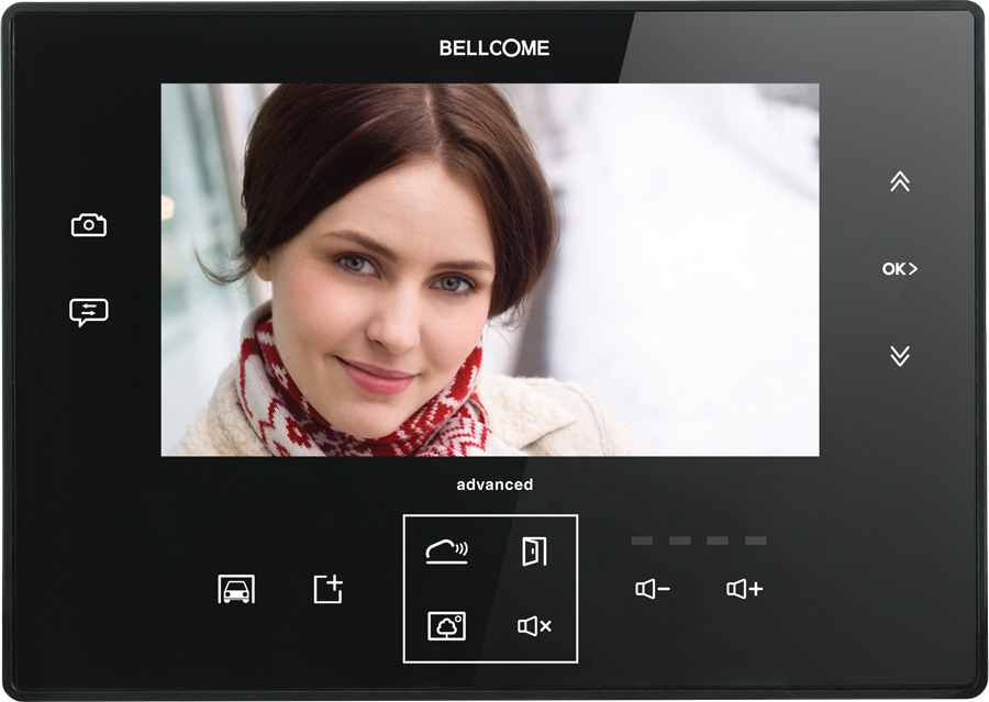 When the terminal is in stand-by mode, touching the key activates audio-video monitoring for 15 sec. Therefore, one can see and hear what goes on in front of the entrance at any time, also having available the option of bidirectional talk. Furthermore, the video monitoring can be done successively on multiple video cameras, as the BELLCOME video door phone system allows the connection of multiple additional cameras.
