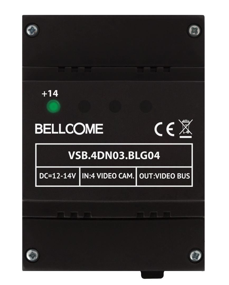 The video selection box with 4 inputs enables the interconnection of the door phone systems with outdoor panels and/or additional external video cameras.